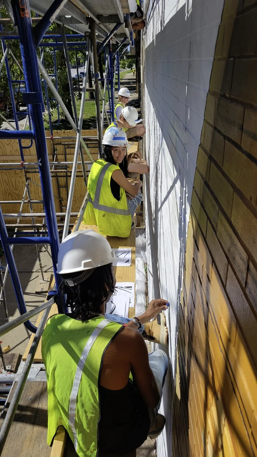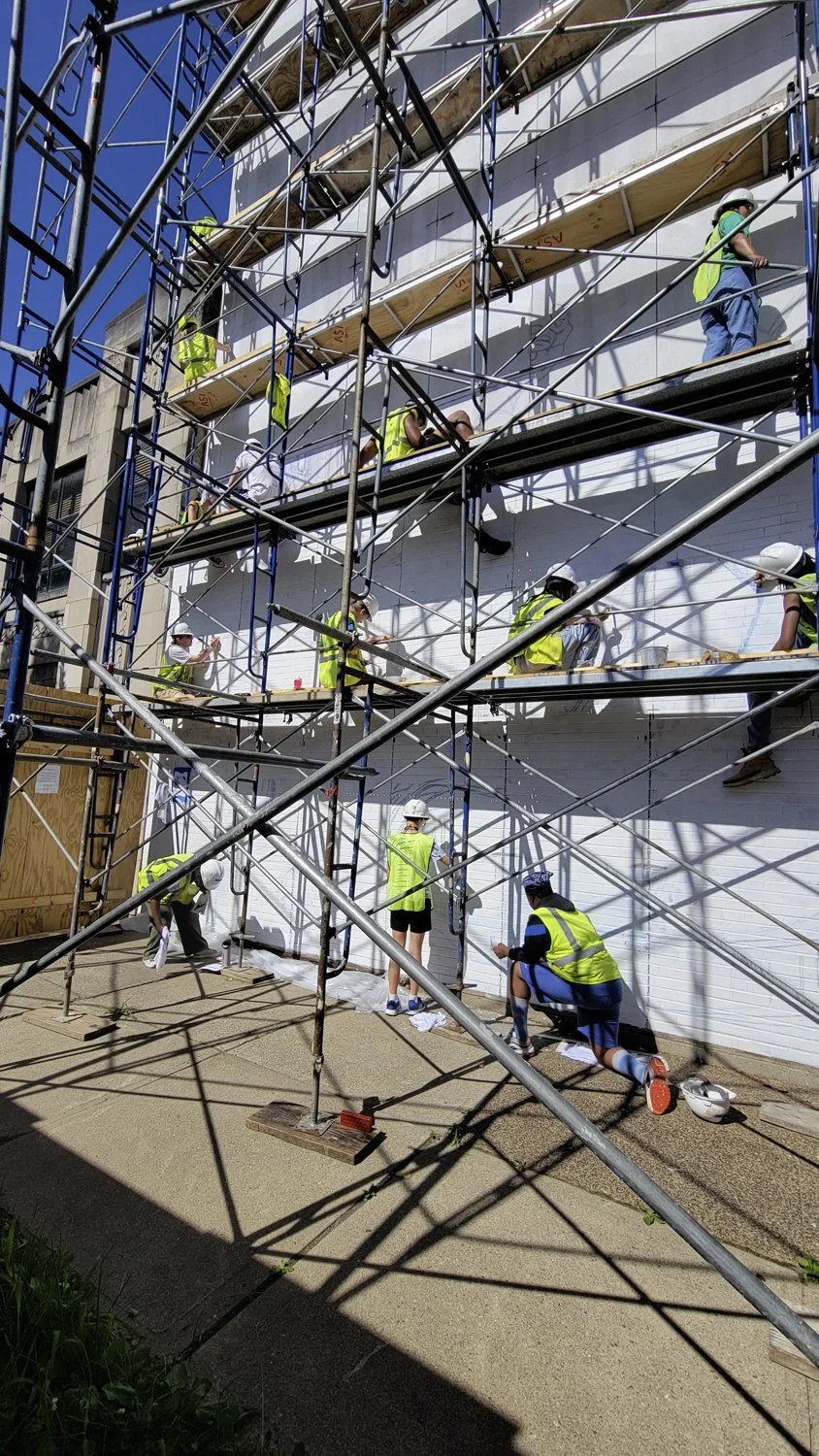 We had an amazing team of 18. 1 lead teaching artist, Gypsy Schindler, and two junior teaching artists, Molly Cardosi and Tamia Saunders. Molly Cardosi took over as lead teaching artist for the last few months as Gypsy had to leave for another mural project. There were 15 main apprentices.