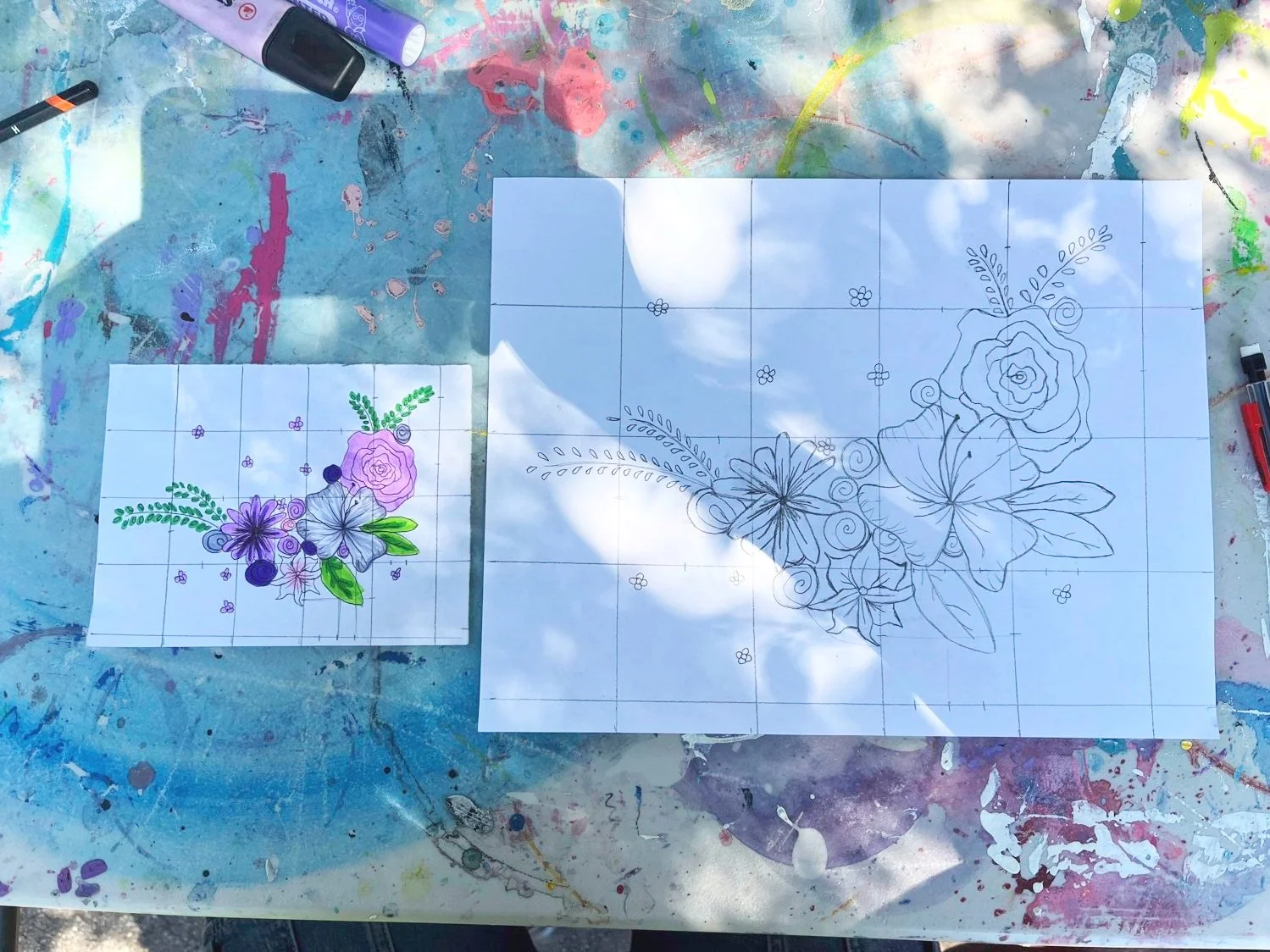 In the beginning, we did practice gridding. Drawing a design on a small sheet of paper and handing it over to the next person to redraw on a larger piece of paper.