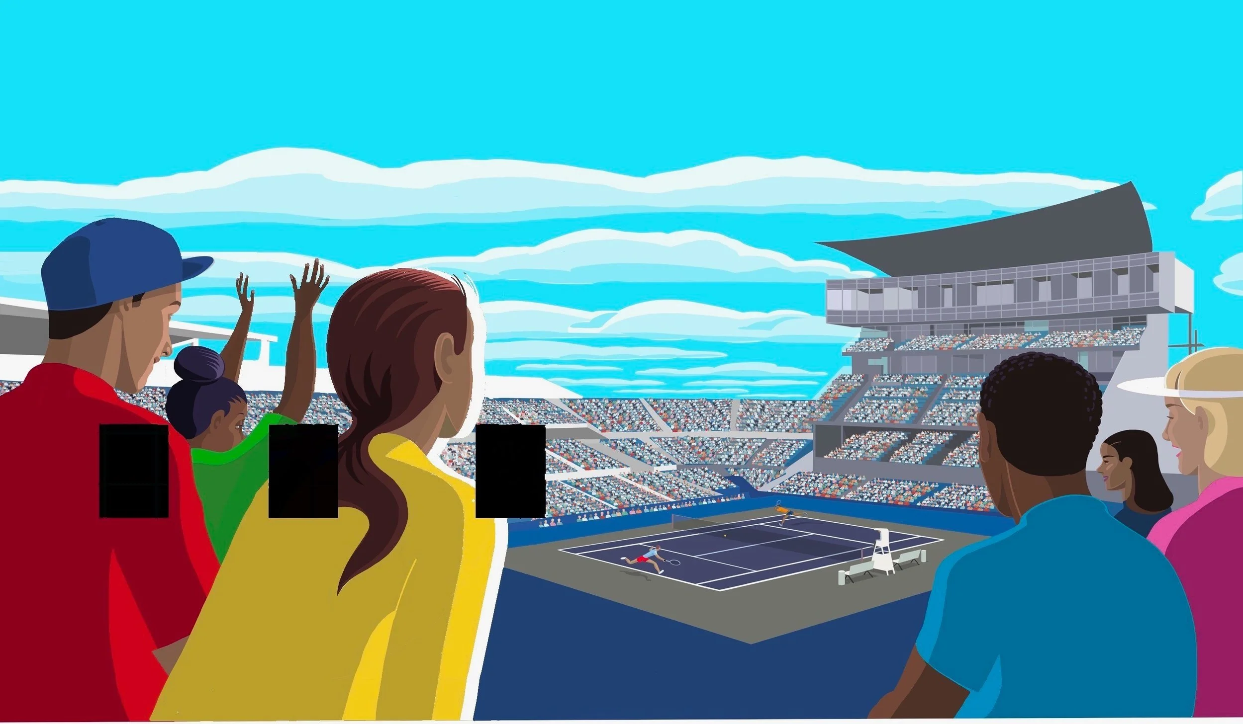 I worked on the entire sky and stadium. I was mainly on cloud duty. I was also the main person to draw, correct, and paint the shoulders and up of the man in the red shirt. I corrected his entire face, head, and hat. I colored them in along with mixing some of his skin tones.