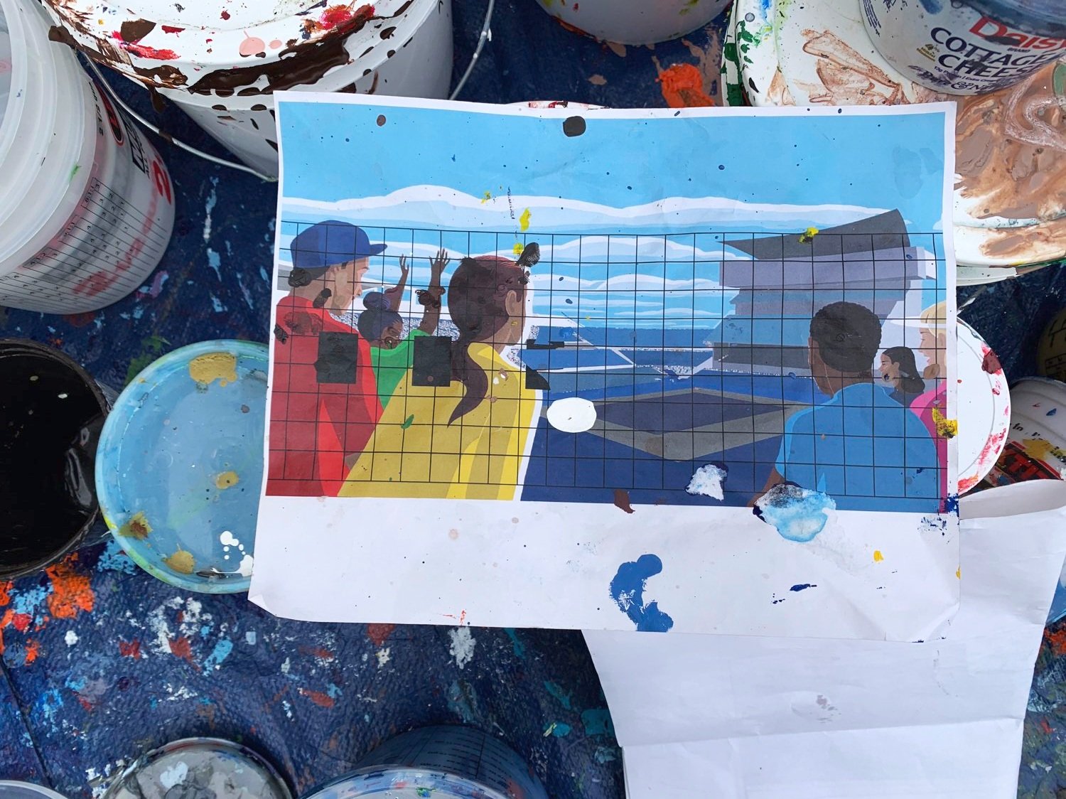 We had some problem-solving with the wall being slanted as it was on a hill. We did our own measurements of the wall and mathed out how big our grid squares should be.
