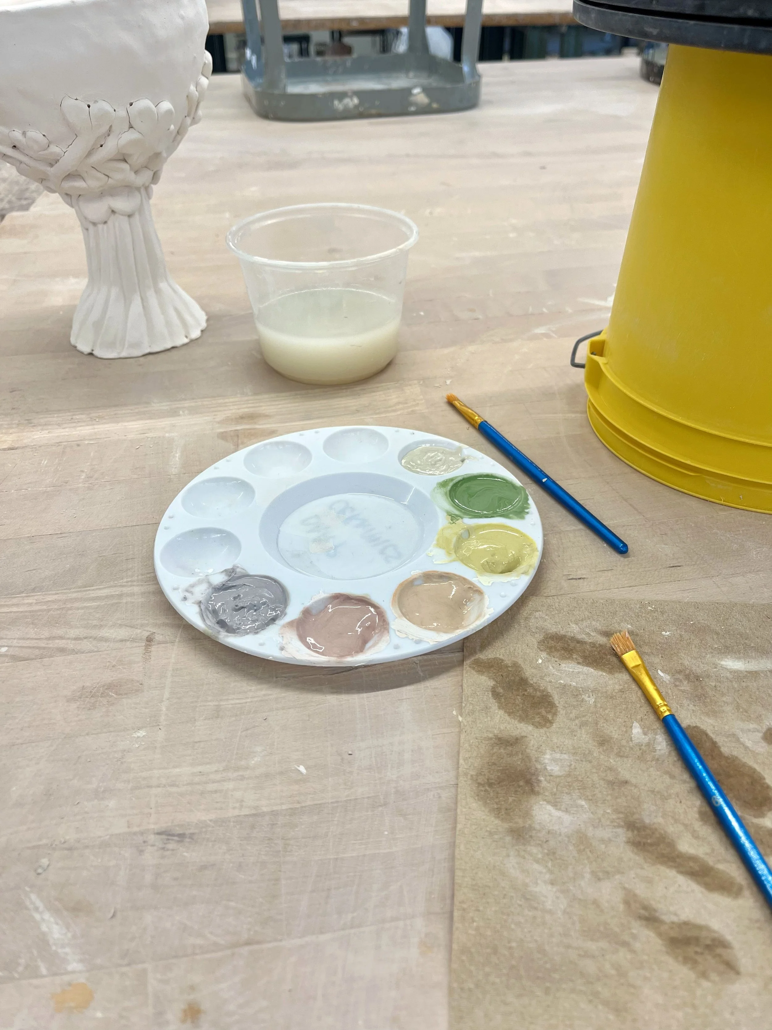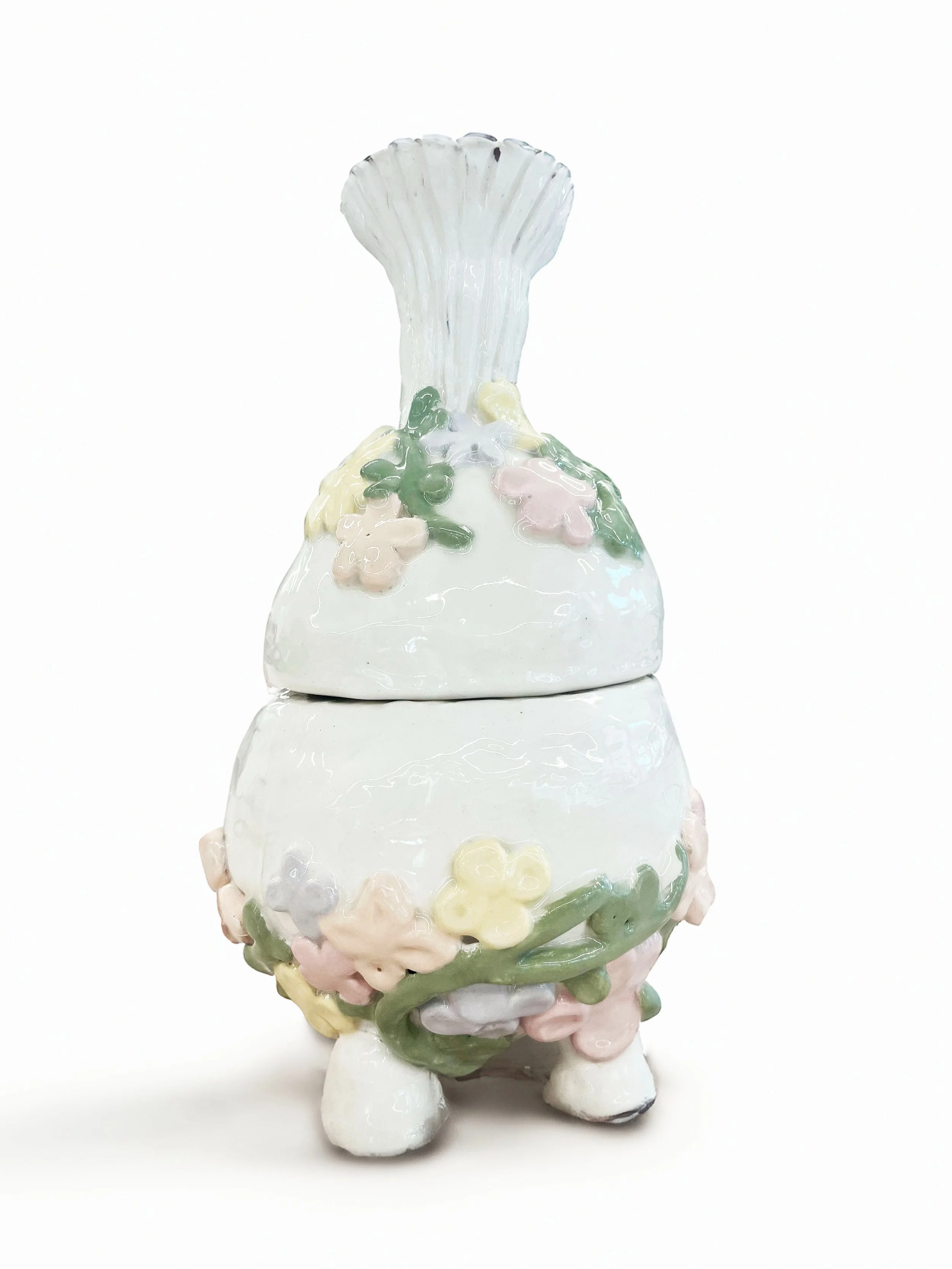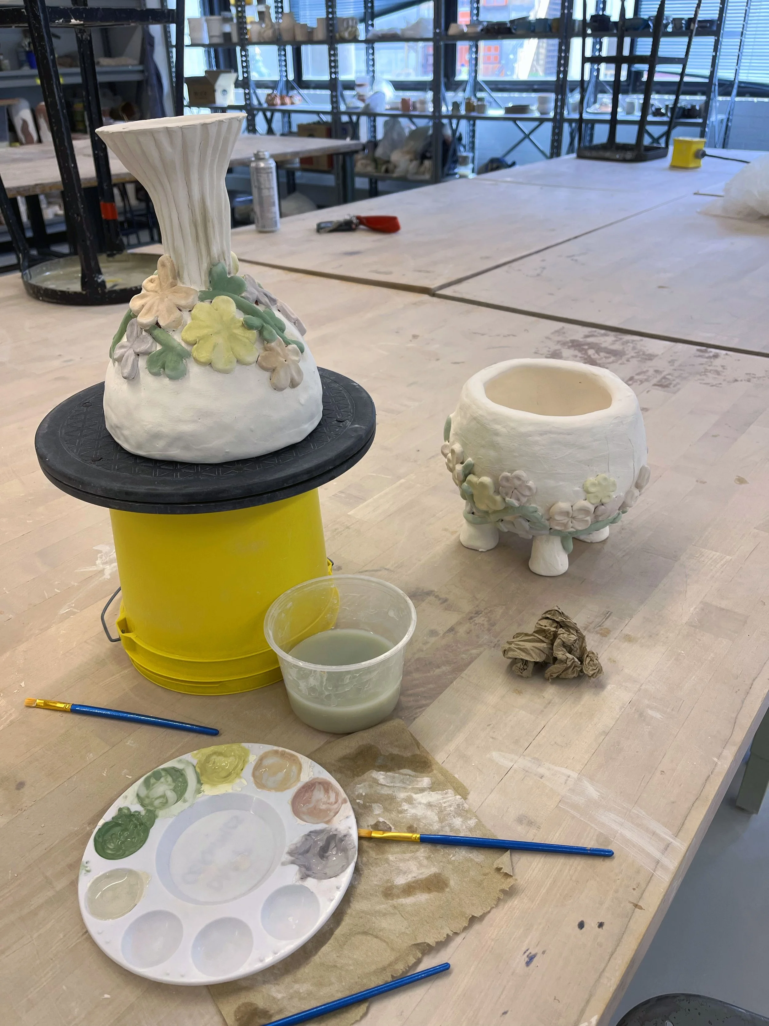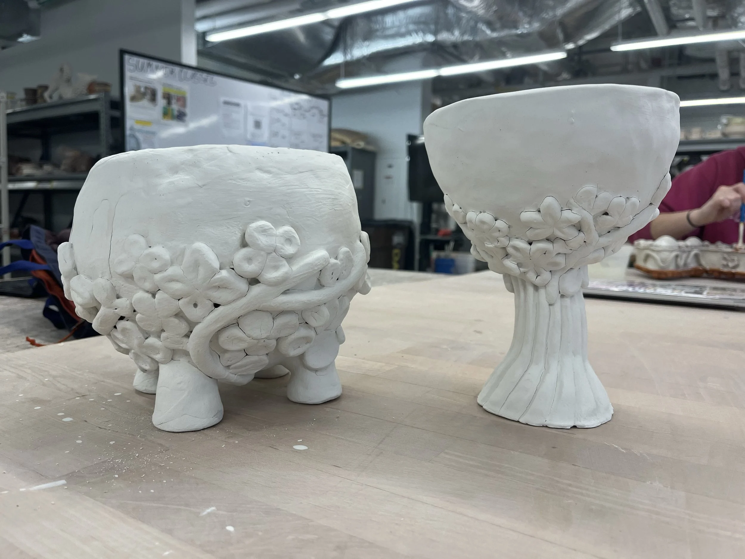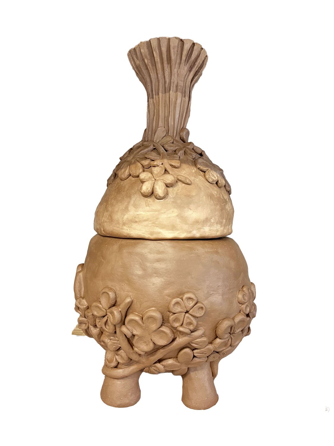 This piece was inspired by historical clay pieces reimagined to make something new. I was inspired by tripods, vases, and the Rococo period. T