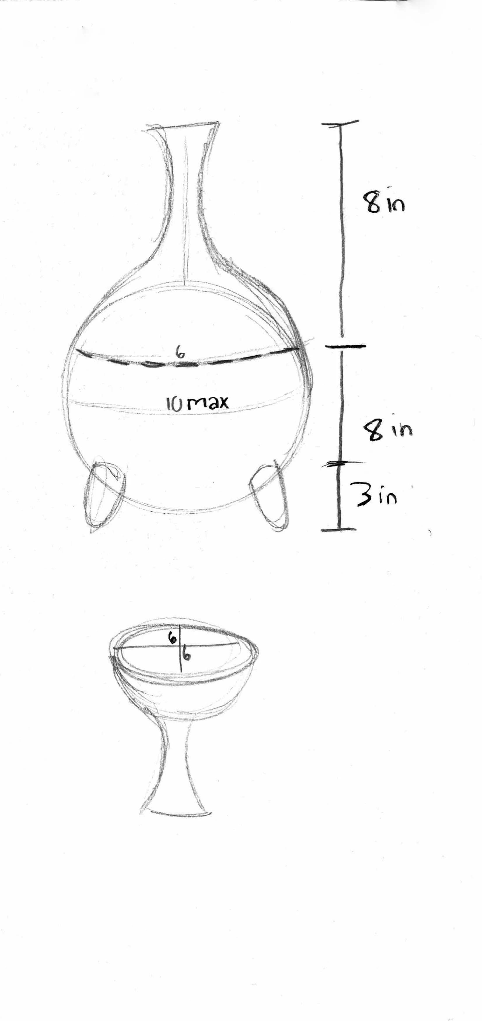 I began thinking of functions and environments this object could live. Whether outside, gifted, or easy to tuck away. I then realized a way to make a vase that splits in half to be two separate functional pieces. One being a tripod and the other a chalice. Stacked together, they are 16 inches tall with a cohesive design. Apart they are two partnering pieces that are more easily stored.